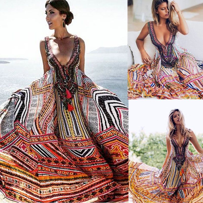 2018 Summer New Women S V Neck Printed Sleeveless Dress Floral Print
